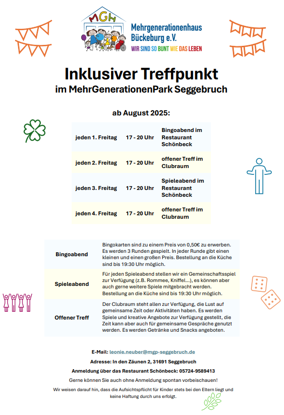 Gerne kann sich per Mail (leonie.neuber@mgp-seggebruch.de) oder telefonisch im Restaurant Schönbeck (05724-9589413) für die Termine angemeldet werden oder einfach spontan vorbeigeschaut werden 😊