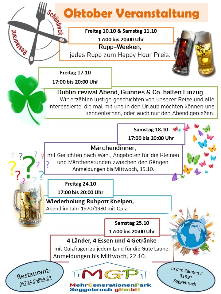 Dieses Wochenende ist Rupp-Weekend. Dann folgt der Dublin Abend und danach unser Märchendinner.